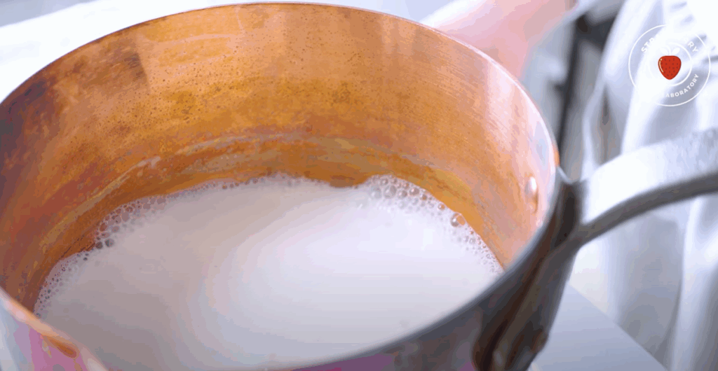 鍋に牛乳をいれて、周りがふつふつしてきたら火を止めます。